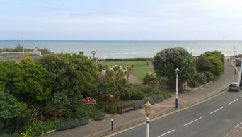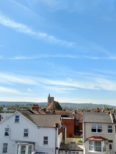 Window overlooking quiet street at rear and with views over rooftops to the Downs in the distance.