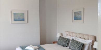 DOUBLE ROOM on the second floor with king size bed. Window with window seat. Seating area. Sea views.